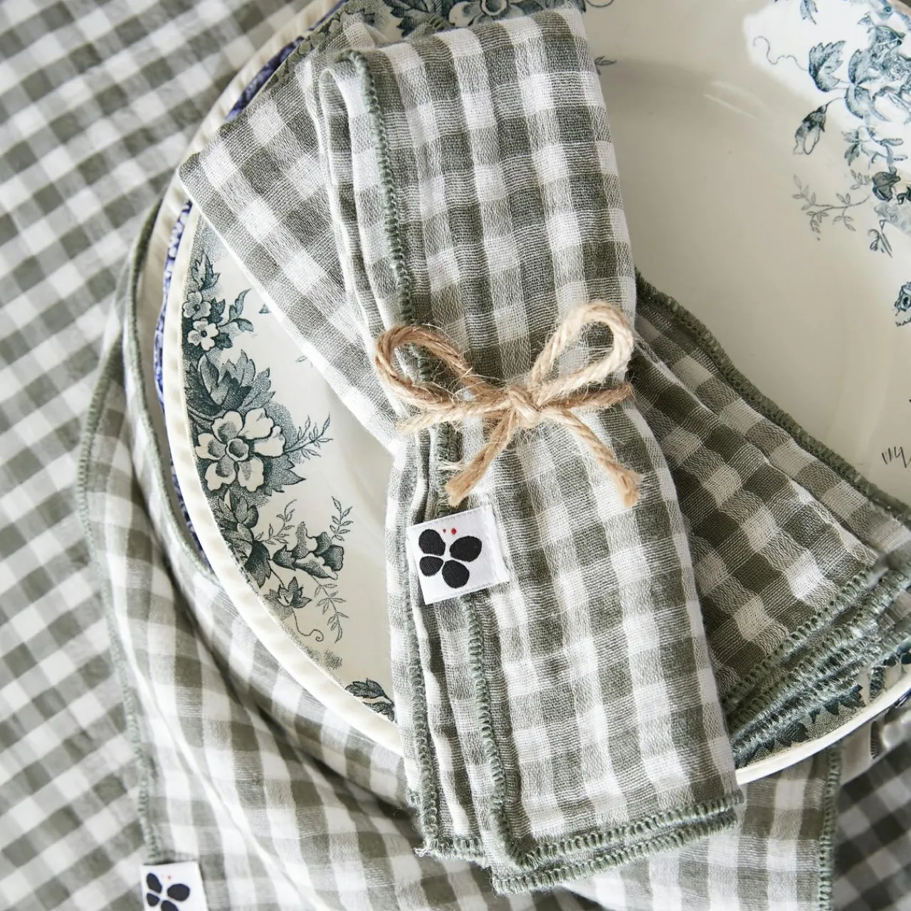 Imprimé : serviettes à carreaux vichy.