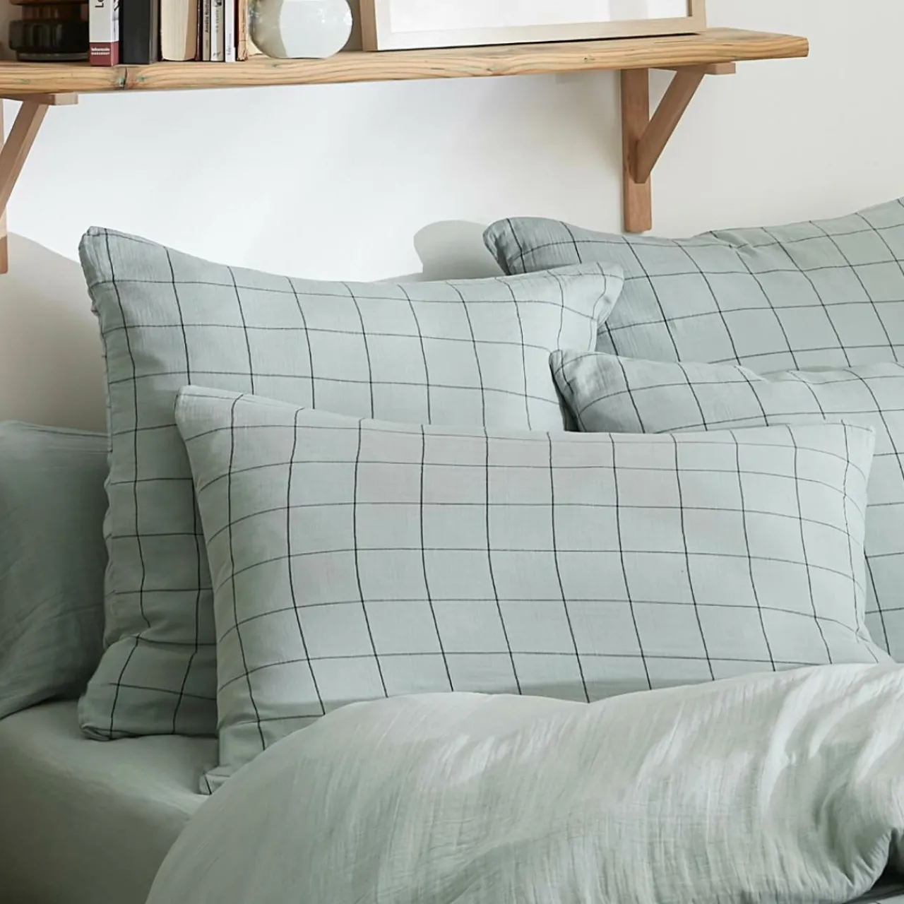 Imprimé : taie à grands carreaux.