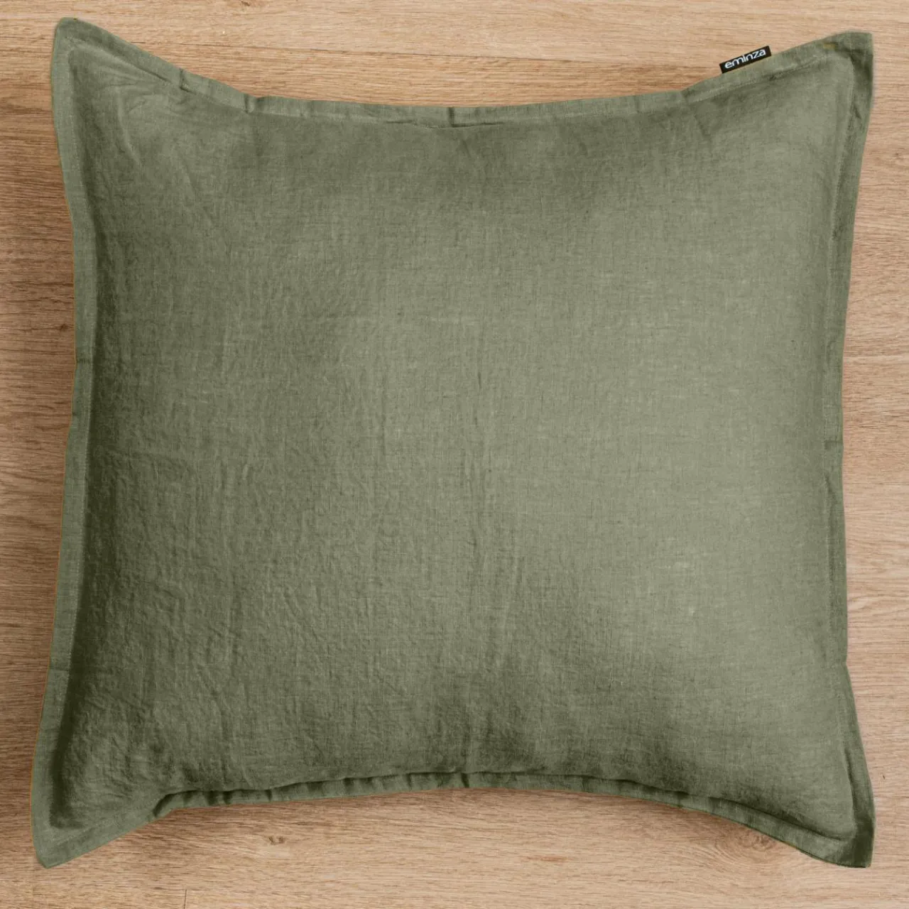 Taie D’Oreiller, Traversin|EMINZA Taie d’oreiller carrée lin lavé (80 x 80 cm) Louise Vert romarin