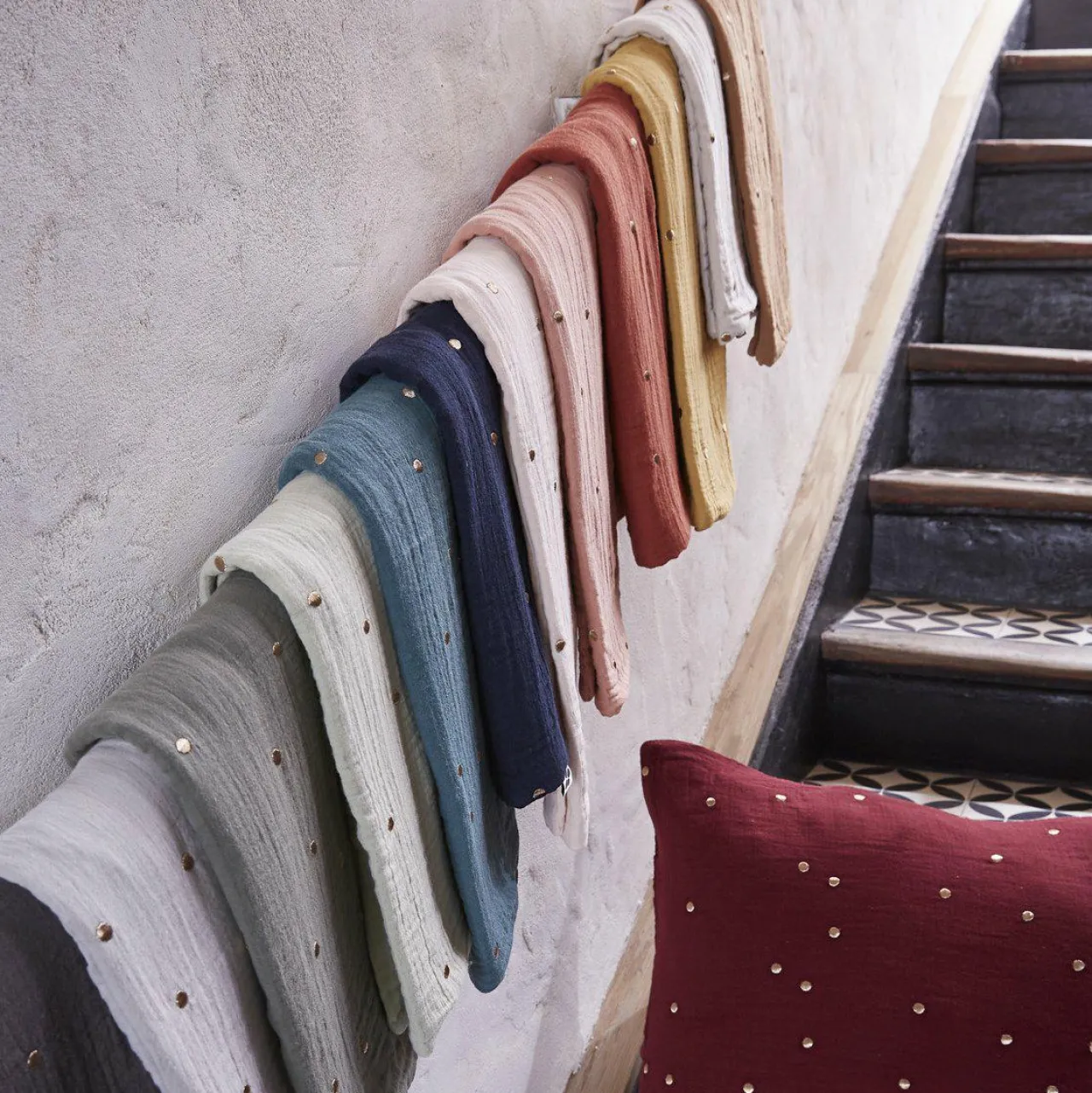 Imprimé : taie à pois brodés.