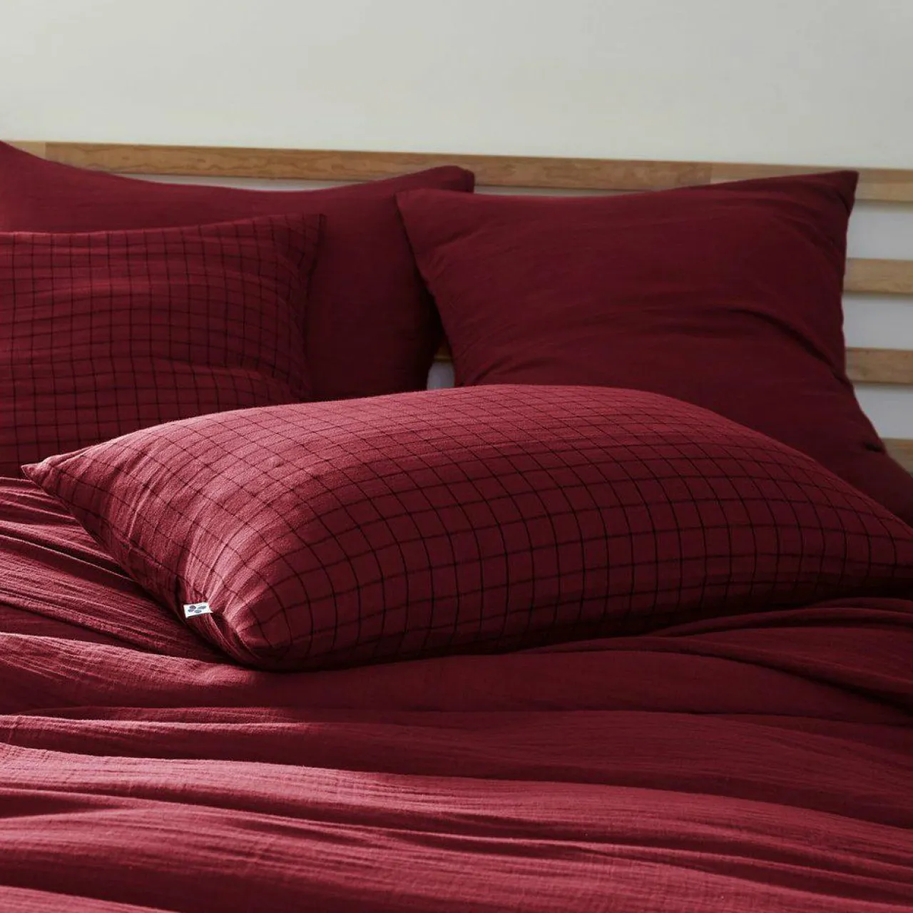 Imprimé : taie à petits carreaux.