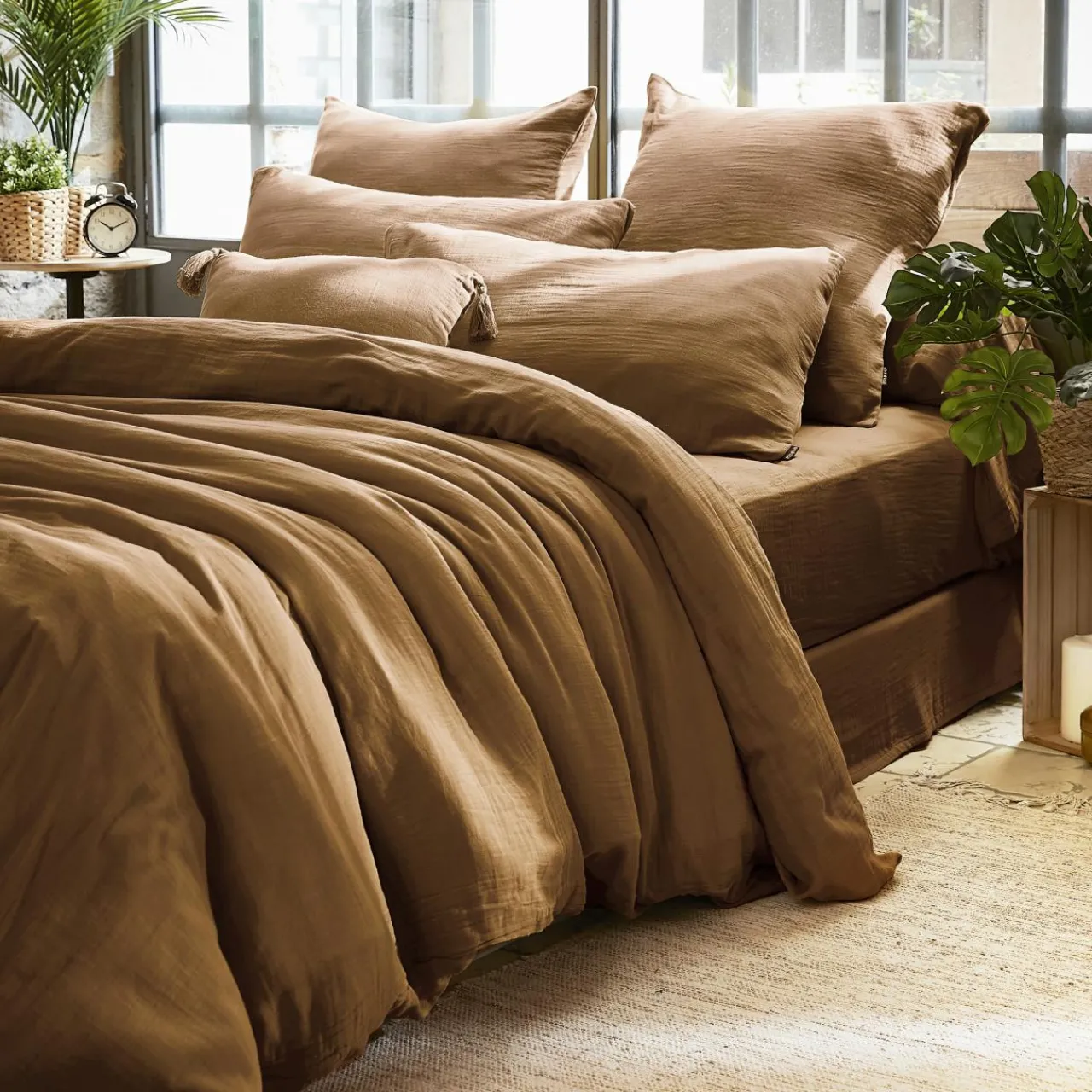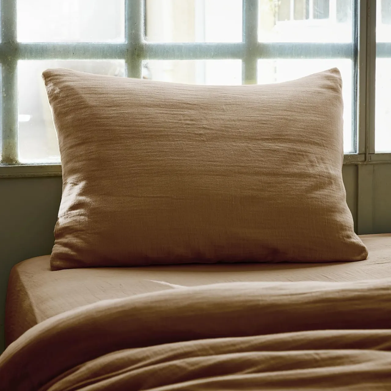 Taie D’Oreiller, Traversin|EMINZA Taie d’oreiller rectangulaire gaze de coton (50 x 80 cm) Gaïa Camel