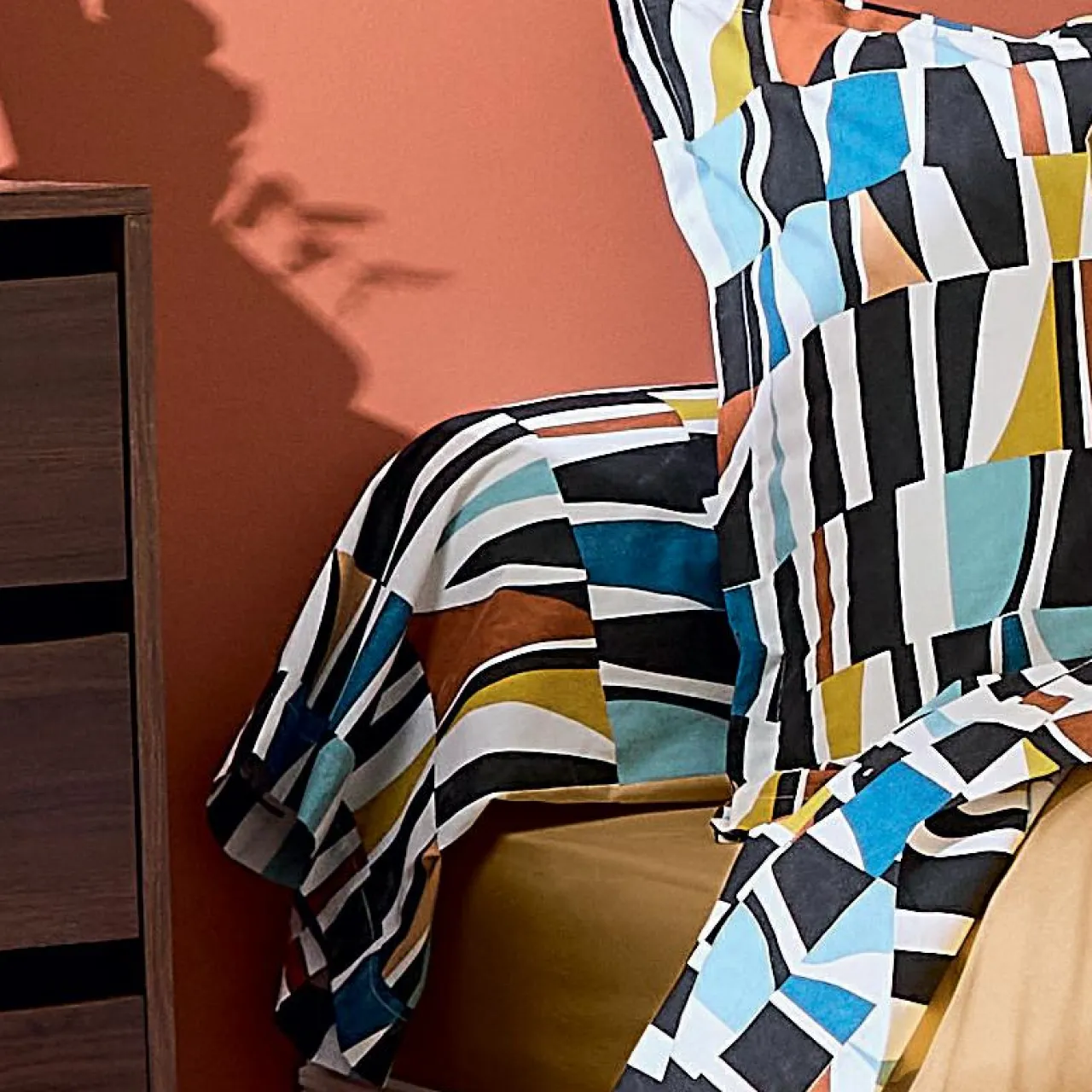 Imprimé taie à motif graphique.