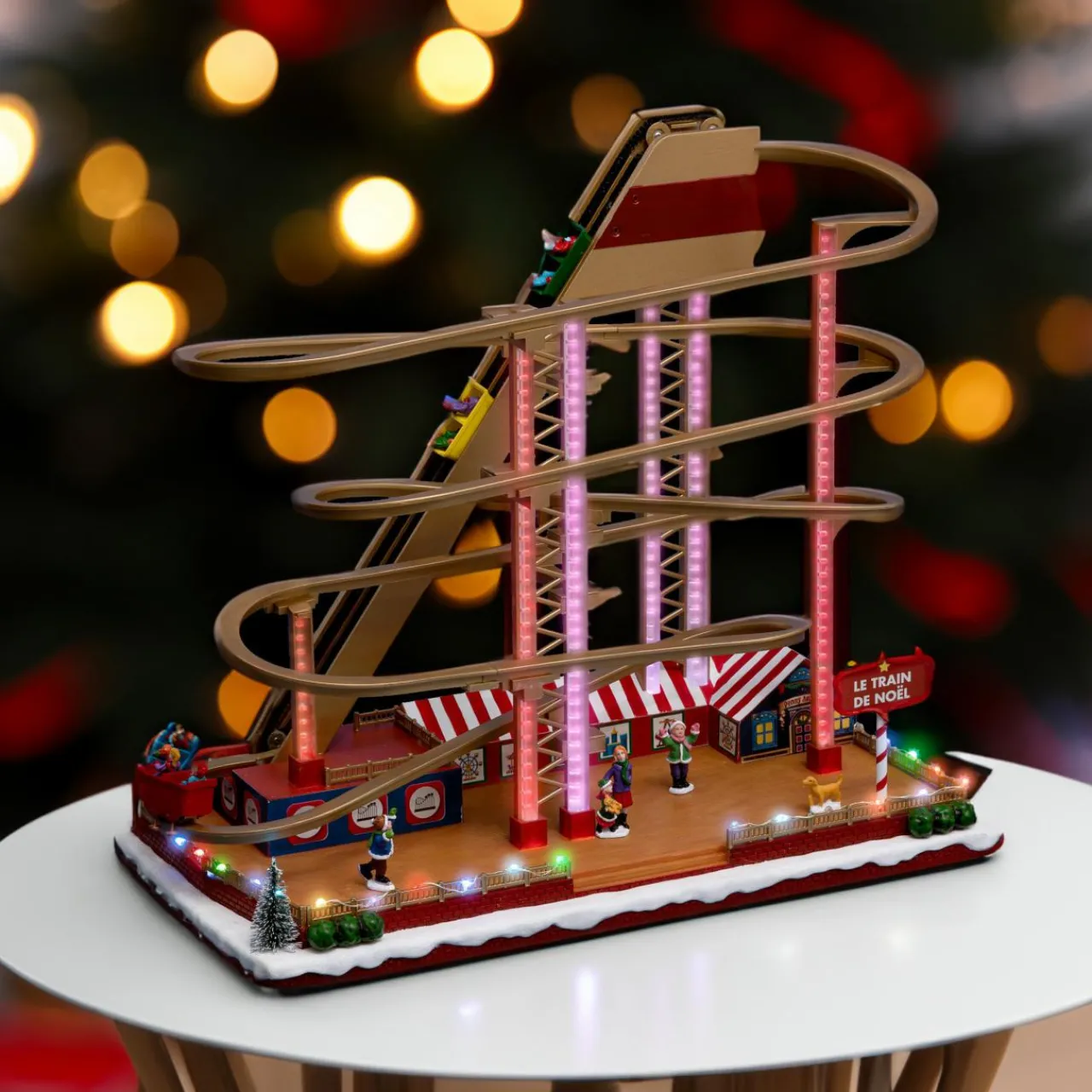 Complétez votre décor de Noël avec cette scène pittoresque lumineuse et ses mélodies de Noël.