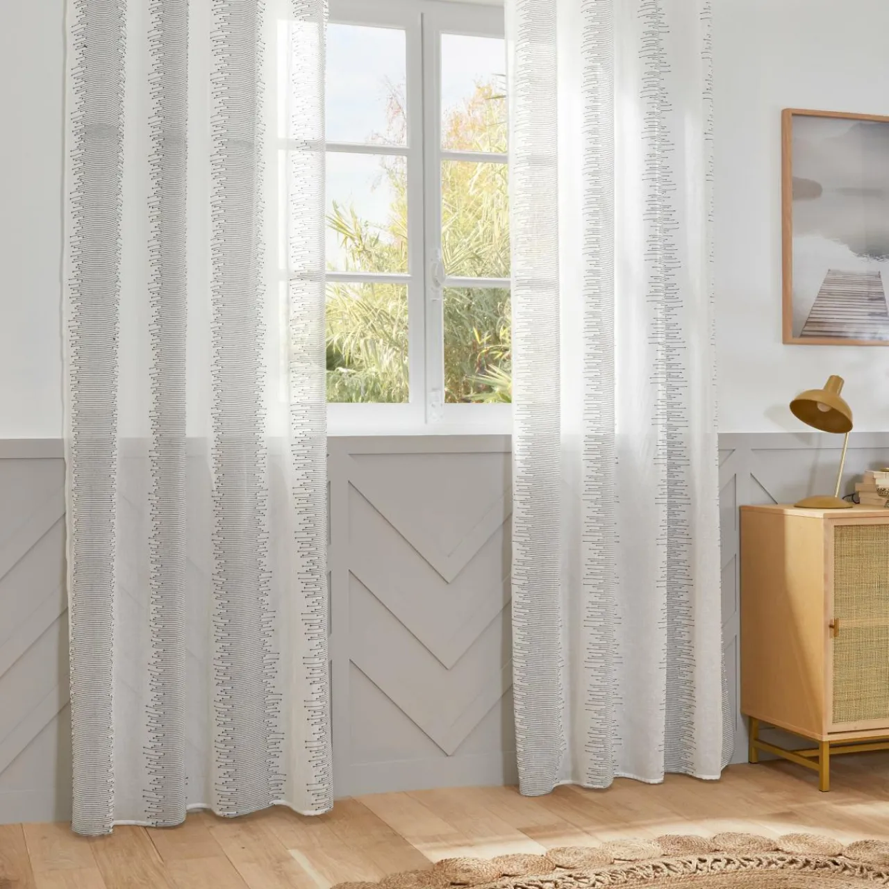 Imprimé : voilage à motif graphique.