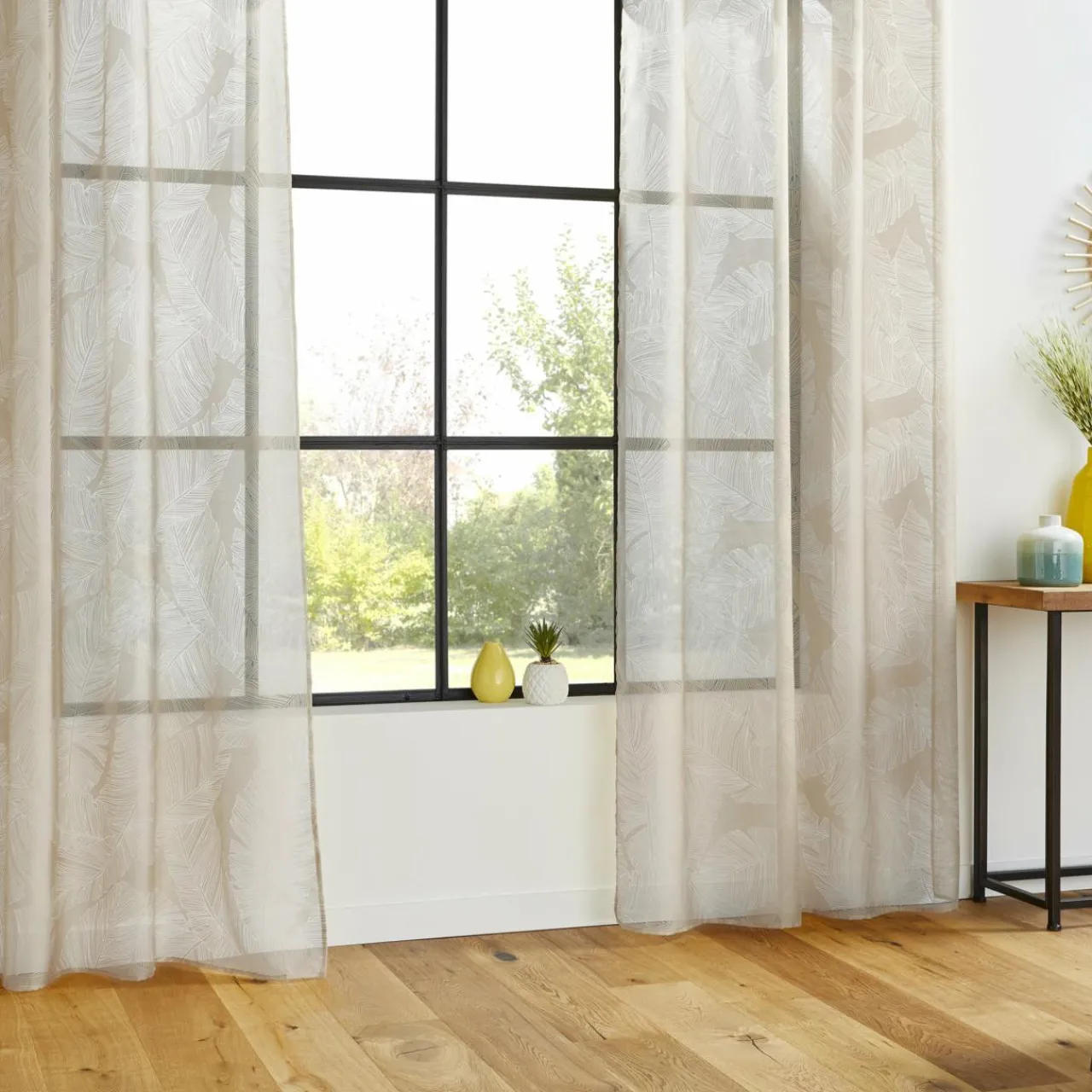 Un voilage à l’imprimé feuillage tropical, parfait pour apporter fraîcheur et peps dans la pièce.