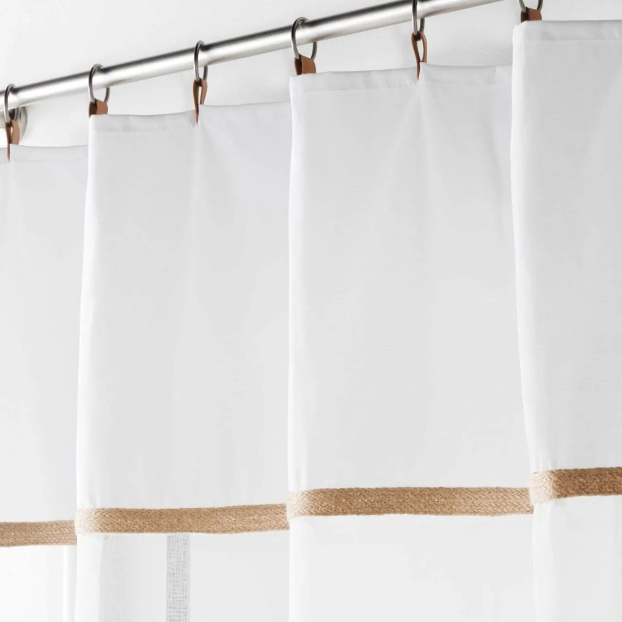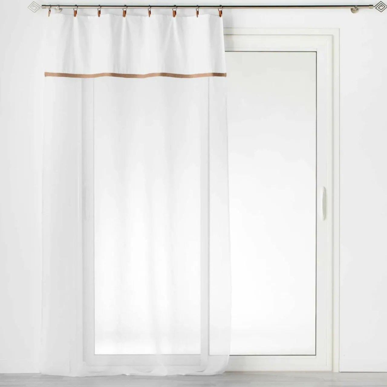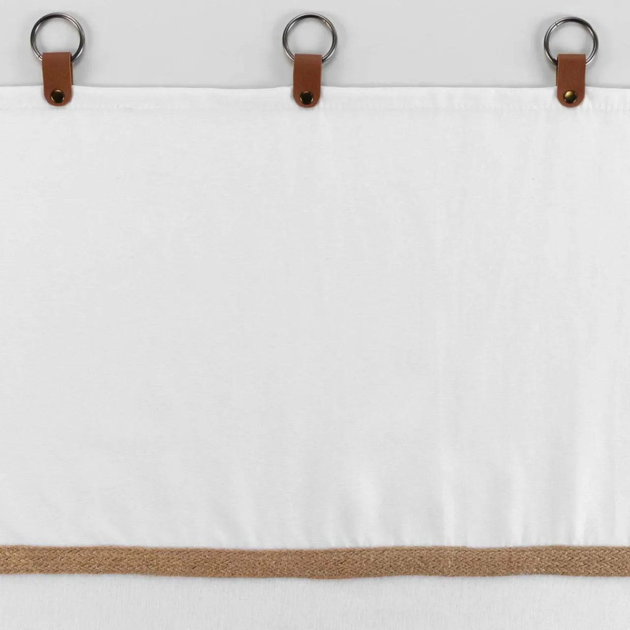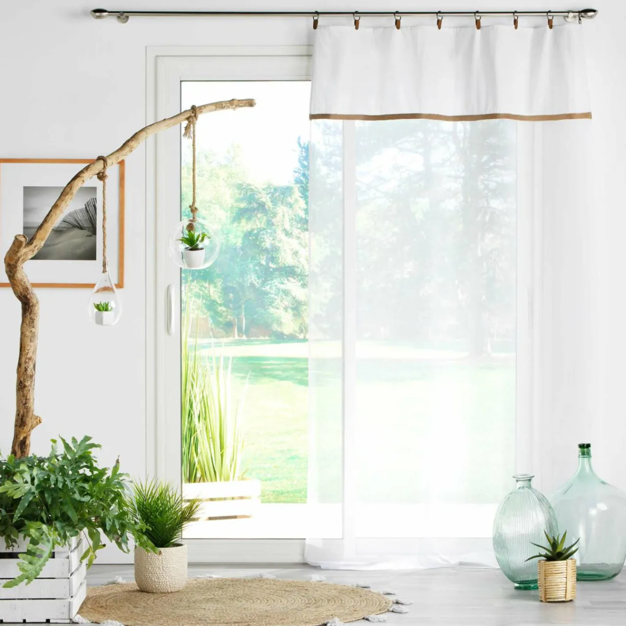 Adoptez ce voilage avec son liseré en jute et ses anneaux en métal, pour une note originale jusque sur la fenêtre.