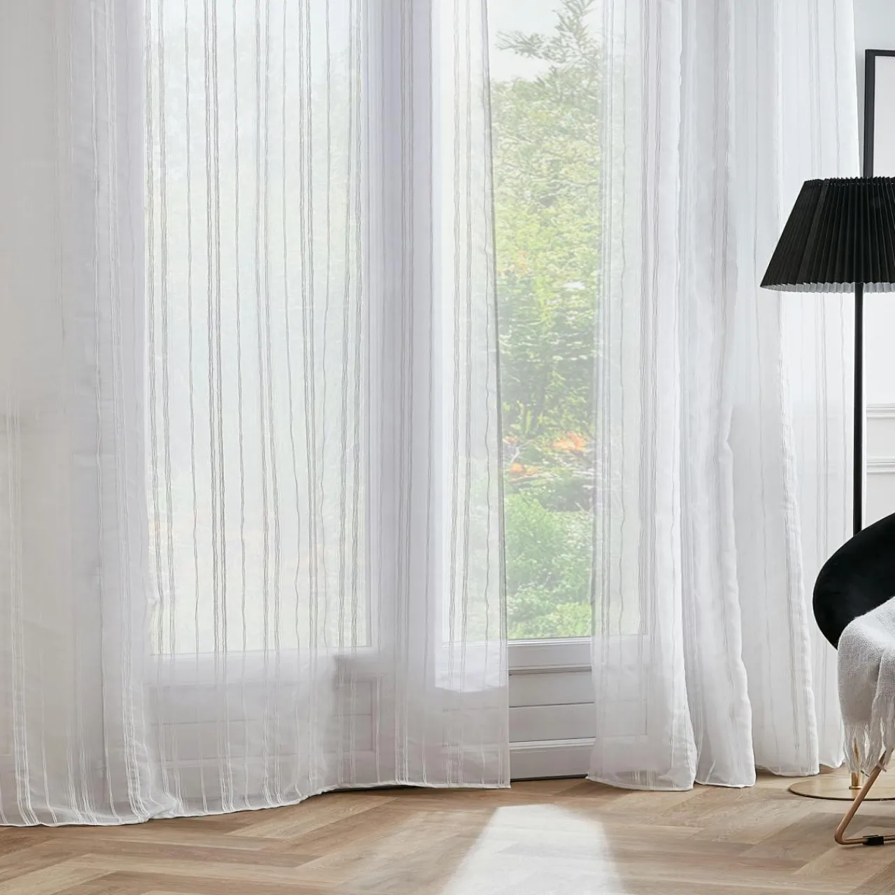 Imprimé : voilage jacquard à motif tissé.
