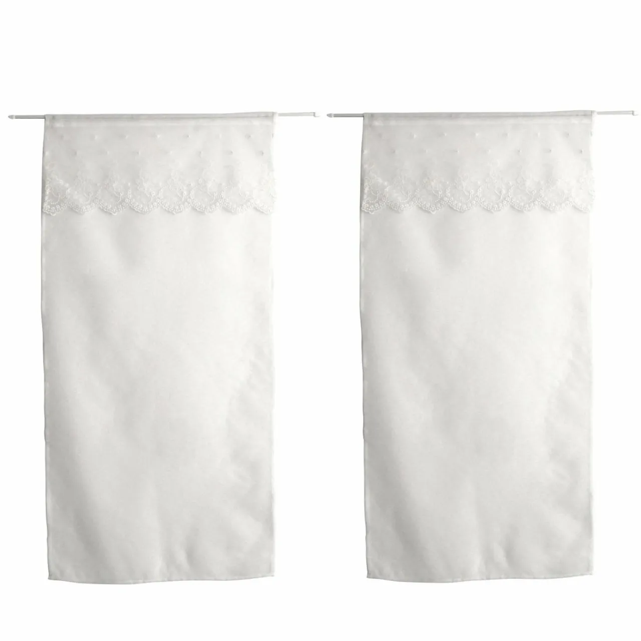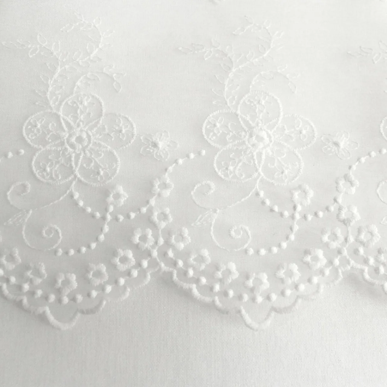Imprimé : voilage à volant fleuri brodé.