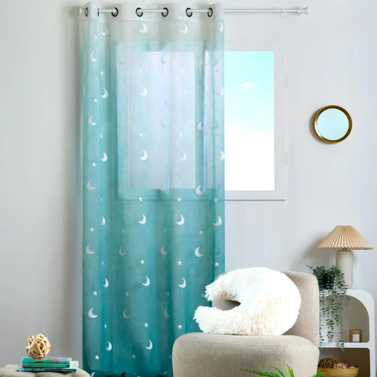 Laissez-vous bercer par la douceur de la nuit avec ce voilage Moonlight. Son motif de lunes et d’étoiles brodées apporte une touche de poésie à la chambre de votre enfant, créant une atmosphère apaisante et rêveuse. Sa légèreté tamise délicatement la lumière, offrant une ambiance douce et rassurante.